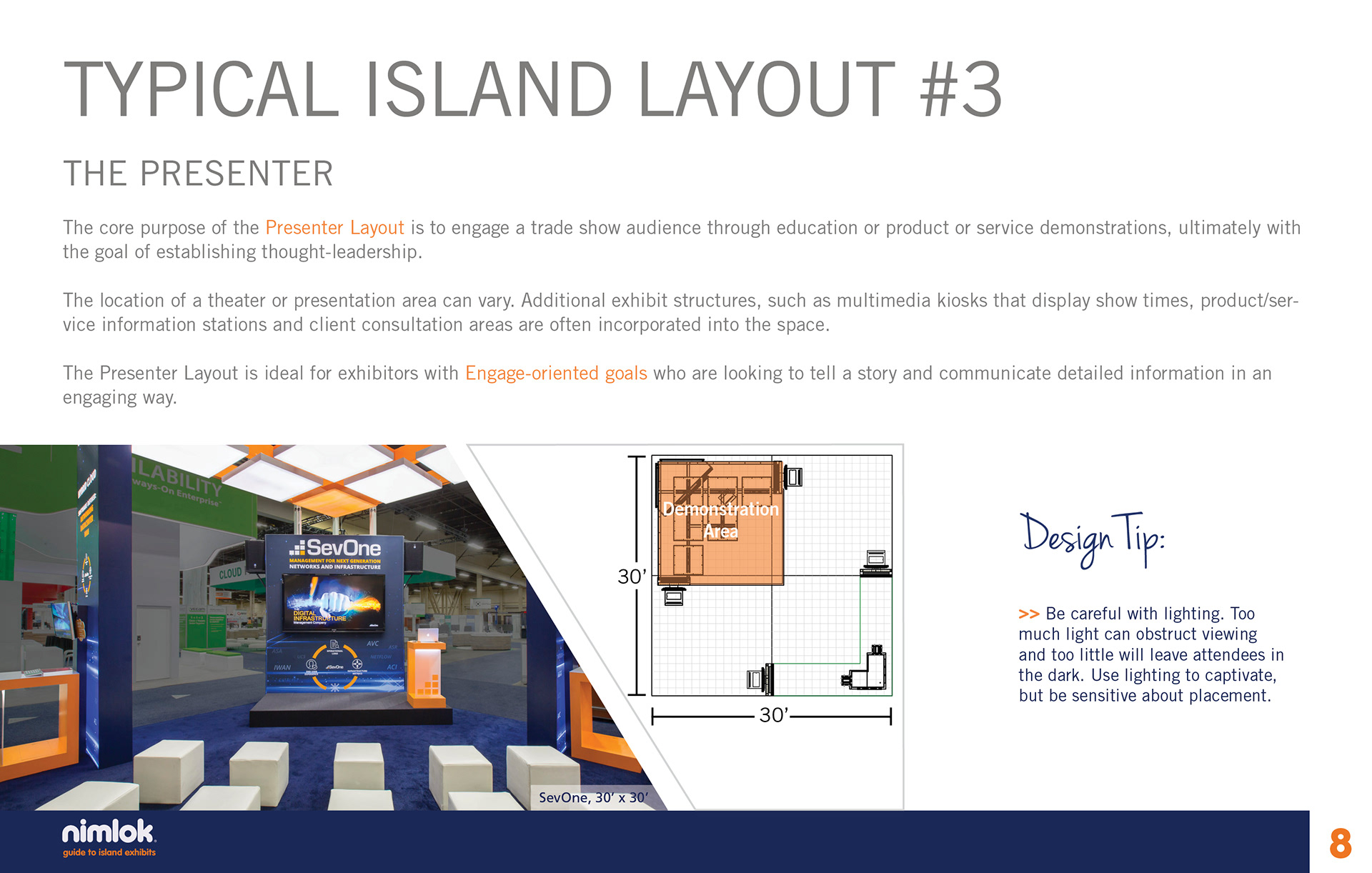 Project done while working at Orbus, the objective of this was to display the capabilities an island exhibit as well as specifications. Focus was upon strong photography, simple layout and easy readability.