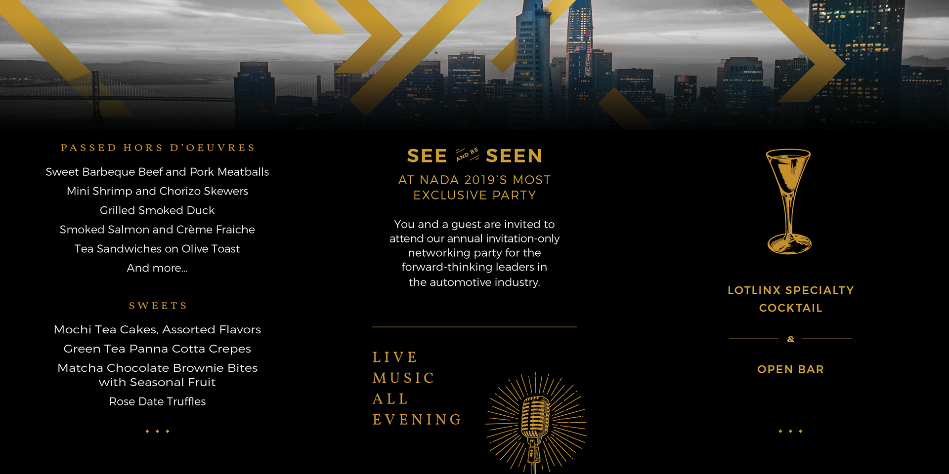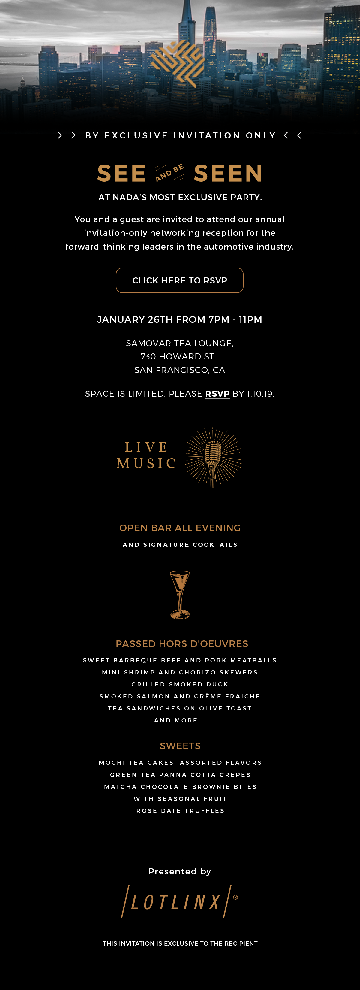 Invitation I designed while working at LotLinx. The first two are the printed file, and the third is the email that went along with this send.